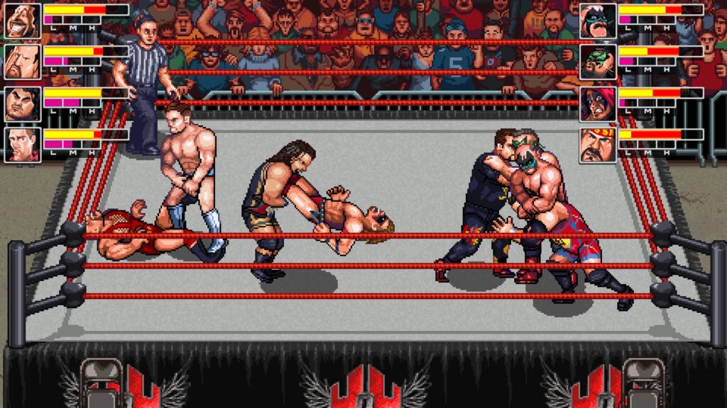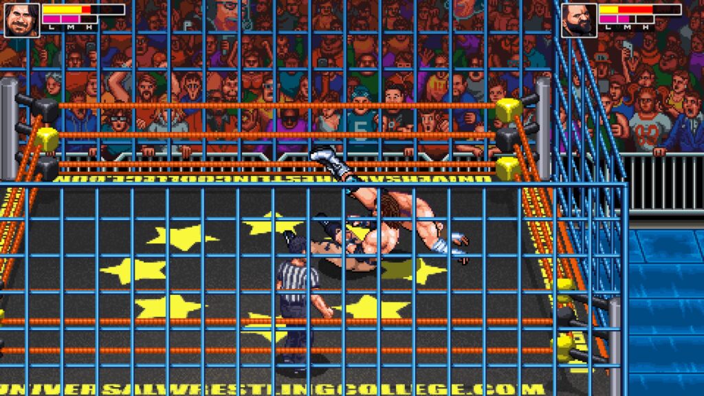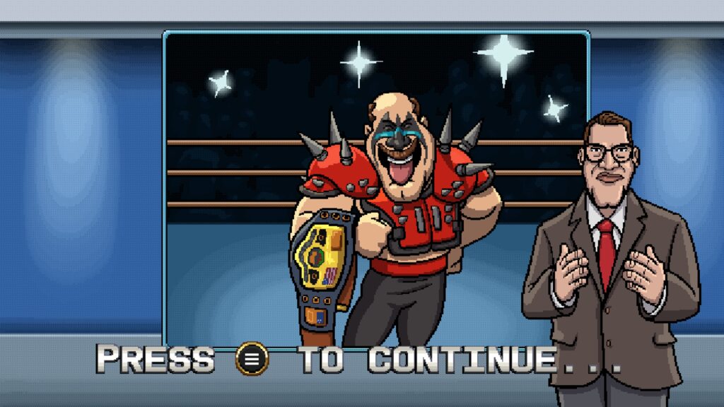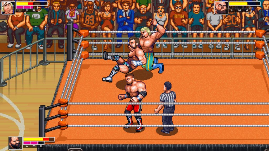 RetroMania Wrestling looks and especially sounds authentically retro. To a player that has never played these types of titles they may think the quality is leaving a lot to be desired but for those familiar with the array of arcade titles that have inspired it RetroSoft Studios could not possibly have created a more genuine experience if they tried. It’s accessible and fun for players of all ages and the inclusion of local multiplayer allows the whole family to get in on the action. A kickass soundtrack adds energy to the matches and keeps it feeling fast paced while avoiding the feeling of being a simulation experience like the WWE 2K series for example.