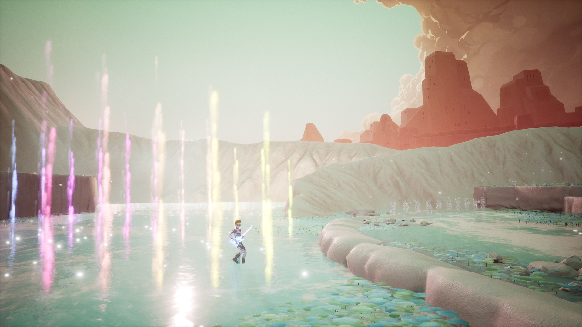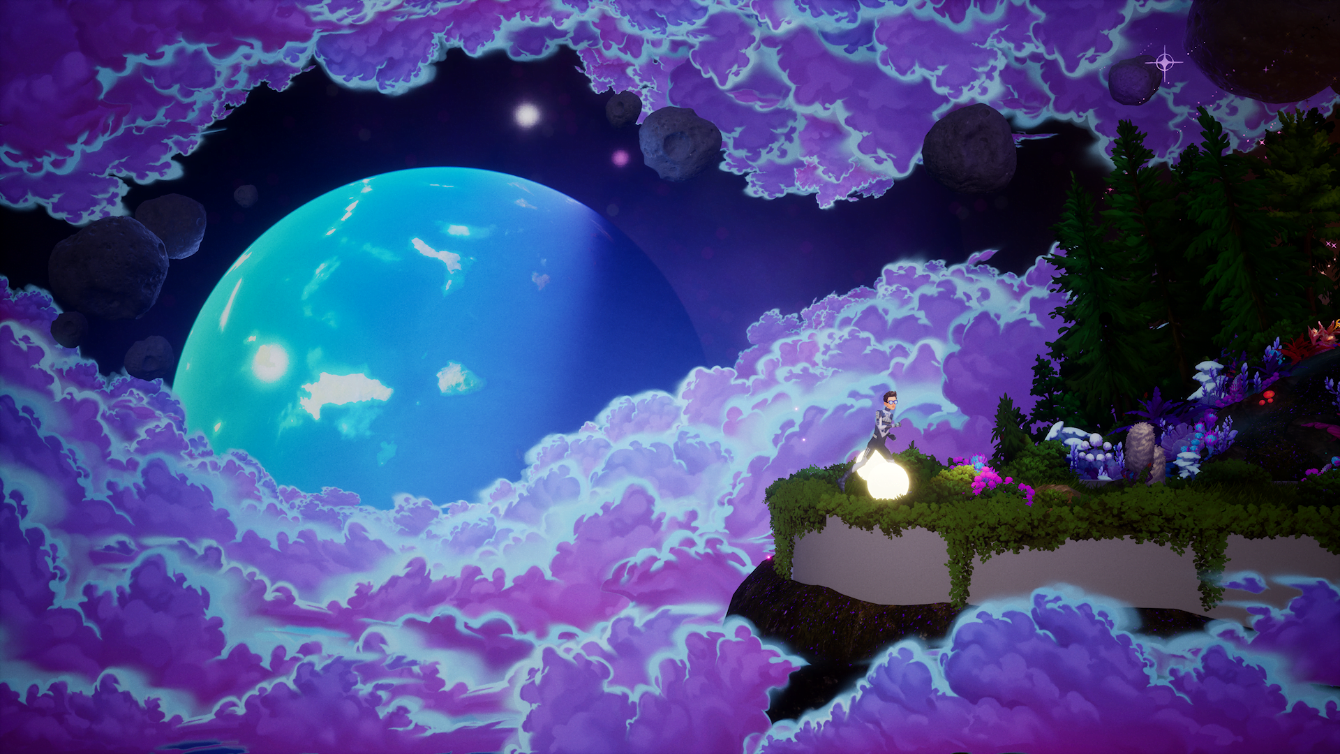 The platforming is extremely simple and fails to distract from the epic soundtrack playing in the background, added to as often or as little as the player wants with Francis’ guitar. Striking these chords illuminated essentially everything and everyone in the environment as he passes them by, literally turning every location into a continuous light show. Shredding on the guitar, regardless of stopping and starting, seems to always pick back up in tune with the underlying soundtrack which lends to a seamless audio experience that makes the experience so special.