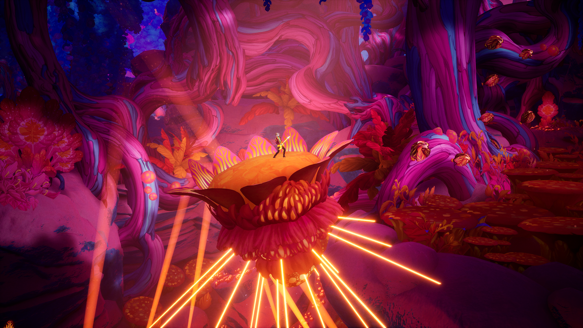 Played from the perspective of a side-scroller, The Artful Escape is an expression of artistic brilliance that looks and sounds like a rock opera at every turn, never ceasing to deliver epic set pieces during its brief three-to-four hour runtime that encompasses platforming and rhythm elements.